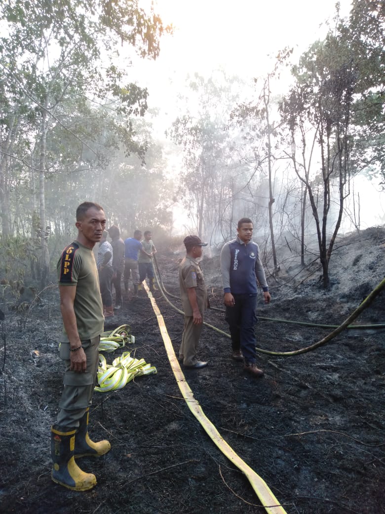 PANGKALANKERINCI (MR) - Kebakaran hutan dan lahan (Karhutla) yang menghanguskan lebih kurang 10 hektar di areal Datuk Sati Rantau baru, Badagu, Kelurahan Langgam, Kecamatan Langgam, Kabupaten Pelalawan, Riau, Sabtu, tanggal 28 Juli 2019 yang lalu, saat ini telah padam dan sedang dilakukan pendinginan.