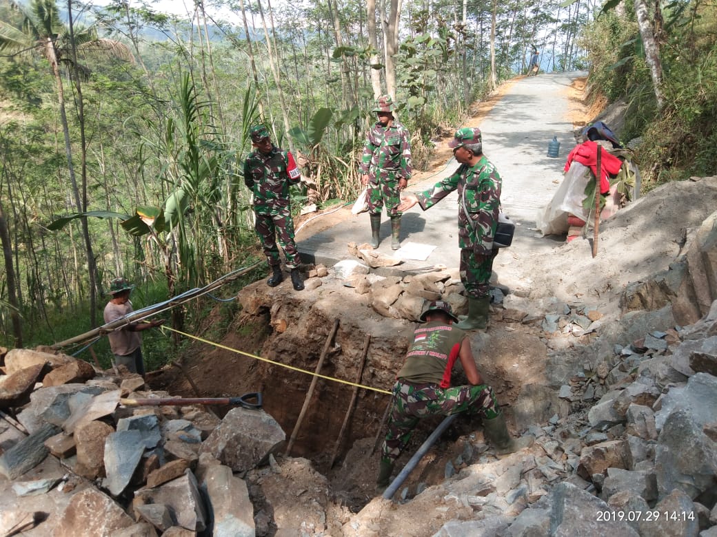 "Sekarang kita tinjau pengerjaan gorong-gorong di Dusun Nitri," ungkap Dandim 0806/Trenggalek. Rabu, 31 Juli 2019.