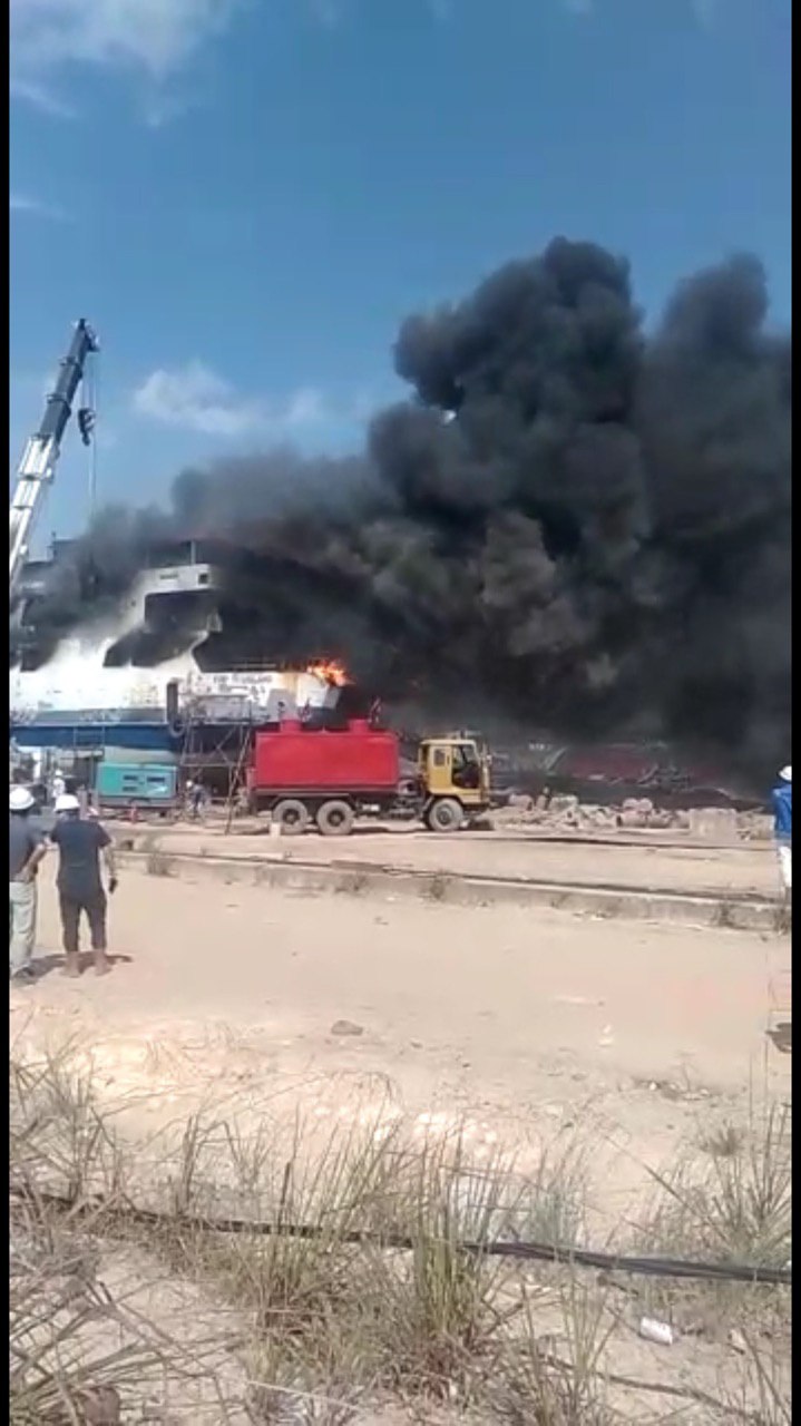 BATAM (MR) - Rabu 31 Juli 2019 pukul 09.30 WIB di PT. KMS, JL. PT. Mutiara RT 02 RW 02 Desa Pangke Kec. Meral Barat Kab. Karimun telah terjadi kebakaran 1 Kapal Roro KMP. Sembilang yang sedang docking (diperbaiki).