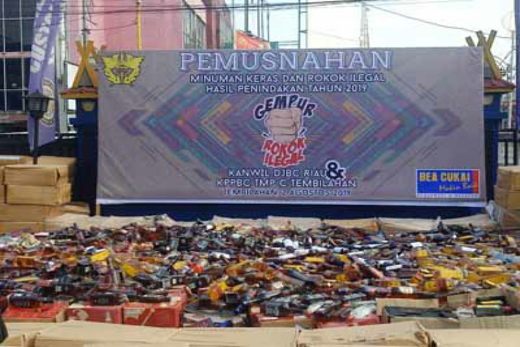 "Senilai barang yang dimusnahkan itu berupa Rokok dan Minuman Keras (Miras) hasil 28 kali penindakan tahun 2019," kata Kepala KPPBC Tipe Madya Pabean C Tembilahan.