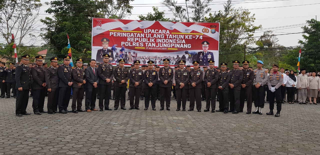 TANJUNGPINANG (MR) - Polres Tanjungpinang menggelar Upacara Peringatan Ulang Tahun ke-74 Republik Indonesia bertempat di lapangan apel Polres Tanjungpinang, Sabtu (17/8/2019).