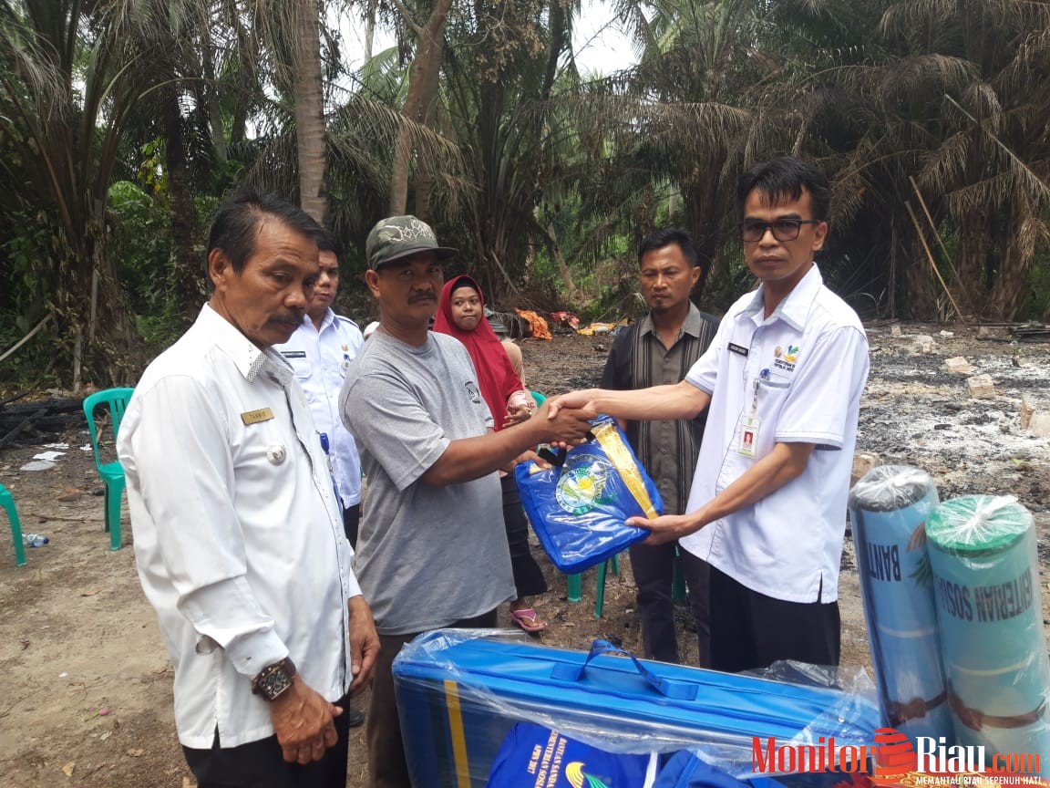 Bantuan diserahkan langsung Kepala Dinas Sosial Hasan Basri S.Kom kepada bapak Sumantri warga RT 03 Kelurahan Bangsal Aceh, Kecamatan Sungai Sembilan.