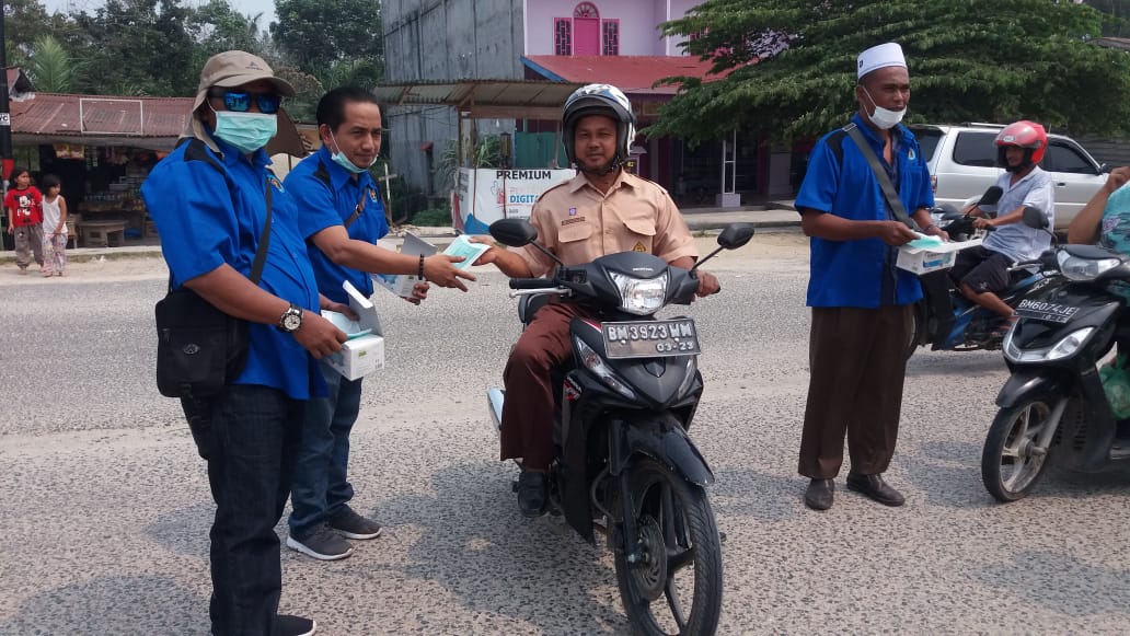 Pembagian masker kepada masyrakat penguna jalan lintas Riau-Sumut ini dilakukan untuk mengantisipasi bahaya kabut asap yang makin menguatirkan bagi kesehatan.