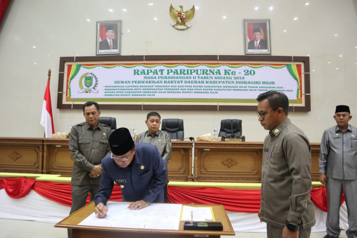 TEMBILAHAN (MR) - Pemerintah daerah kabupaten Indragiri Hilir bersama DPRD kabupaten Indragiri Hilir secara bersama menyepakati Nota Kesepakatan Kebijakan Umum Anggaran (KUA) dan Prioritas Plafon Anggaran Sementara (PPAS) Tahun Anggaran 2020, Sebesar Rp.2.391 triliun