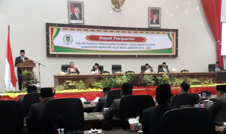 Prosesi pelantikan terhadap 45 Anggota DPRD Kabupaten Inhil periode 2019-2024 dilakukan oleh Wakil Ketua Pengadilan Negeri Tembilahan, Hera Polosia Destiny.