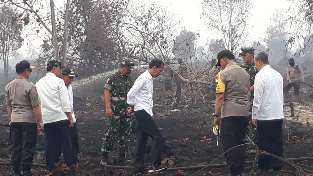 PANGKALANKERINCI (MR) - Presiden RI Ir H Joko Widodo mengunjungi Desa Merbau, Kecamatan Bunut, Kabupaten Pelalawan, Riau, untuk melihat langsung penanganan Kebakaran Hutan dan Lahan (Karhutla), Selasa (17/9).