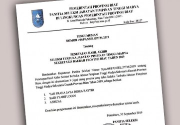 PEKANBARU (MR) - Tim Panitia Seleksi (Pansel) Calon Sekretaris Daerah Provinsi (Sekdaprov) Riau telah mengumumkan tiga nama calon Sekdaprov Riau.