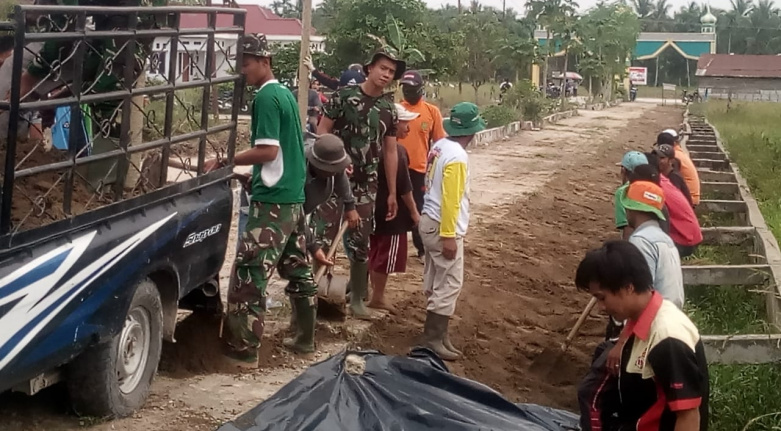 Satgas TMMD ke-106 Kodim 0314/Inhil dengan Masyarakat Saling Membantu