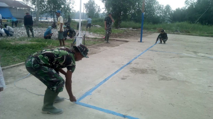 Satgas TMMD ke-106 Kodim 0314/Inhil Goro Bersihkan Lapangan Voly