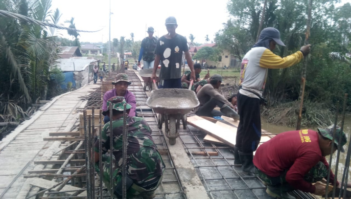 RETEH (MR) - Semangat TNI Manunggal Membangun Desa (TMMD) ke-106 Pembuatan Jembaan beton sudah memasuki pengecoran balok lantai, Senin (21/10/2019).