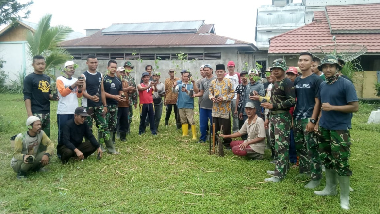 RETEH (MR) - Nilai positip Terus dilaksanakan Satgas TMMD ke-106 Kodim 0314/Inhil di Desa Sanglar, hari ini Satgas bersama masyarakat menanam pohon trembisi di lokasi TMMD.