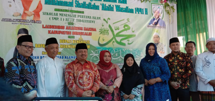 BENGKALIS (MR) - Bupati Amril Mukminin resmikan gedung Sekolah Menengah Pertama (SMP) Islam Terpadu Pesantren Al- Itidalussunny, sekaligus pembukaan Akademi Dakwah Dewan Dakwah di Jalan Damai Langgeng, Desa Bathin Sobanga, Kabupaten Bengkalis, Sabtu (16/11/2019).