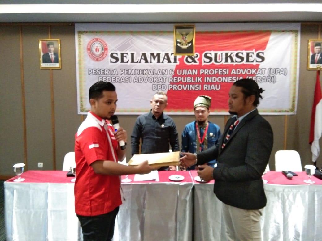 Sementara itu, Ketua DPD Ferari Riau, Noor Aufa,SH,CLA mengungkapkan dengan adanya sertifikat PKPA dan sertifikat kelulusan UPA, maka para peserta akan diharapkan dapat diusulkan untuk dilantik oleh DPP Ferari serta diambil sumpahnya pada Pengadilan Tinggi Pekanbaru.