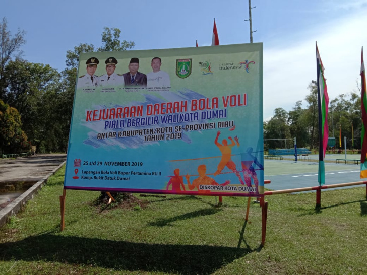 DUMAI (MR) - Ketua Persatuan Bola Volley Seluruh Indonesia (PBVSI) Kota Dumai Kapten Arh Isnanu mengatakan Besok (red-Hari Ini) pembukaan Tournament Volley Ball Daerah memperebutkan piala Wali Kota Dumai Cup dalam rangka HUT Kota Dumai Ke-20 dilapangan Bukit Datuk Pertamina RU II Dumai,berlangsung selama 5 hari kedepan mulai,Senin,25 Sampai 29 Nopember 2019 mendatang.