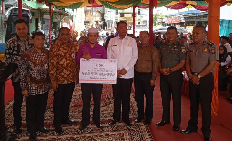 Bupati Suyatno dalam kesempatan ini juga menyampaikan apresiasi kepada BNI yang telah peduli terhadap perkembangan pembangunan di salah satu pondok pesantren yang ada di Bagansiapiapi ini,dengan memberikan dana bantuan CSR sebesar dua puluh juta rupiah setiap tahunnya.