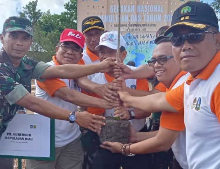 TANJUNGPINANG (MR) - Gerakan Nasional Pemulihan Daerah Aliran Sungai (GNPDAS) Badan lingkungan hidup dan kehutanan Provinsi Kepri mengadakan kegiatan penanaman pohon di daerah aliran sungai di pulau Dompak, kamis (28/11/2019).