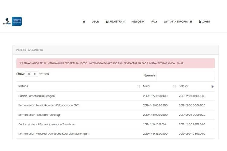 Kendati demikian masih ada sejumlah instansi yang belum menutup pendaftarannya hingga hari ini, Rabu (4/12/2019).
