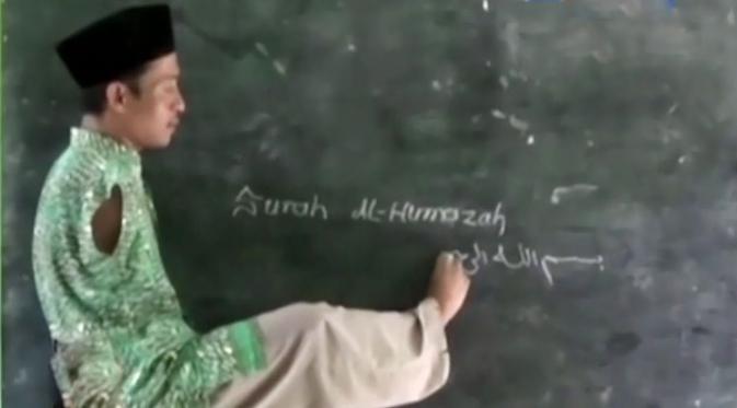 Luar Biasa...!!! Pak Guru Ini Tetap Mengajar Meski Tanpa Lengan