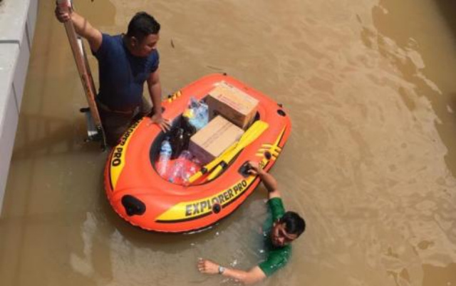 Beruntung ada tetangga yang menghubungi keluarga di luar komplek. Ternyata mereka memiliki fasilitas perahu dari kantornya.*** (okezone)