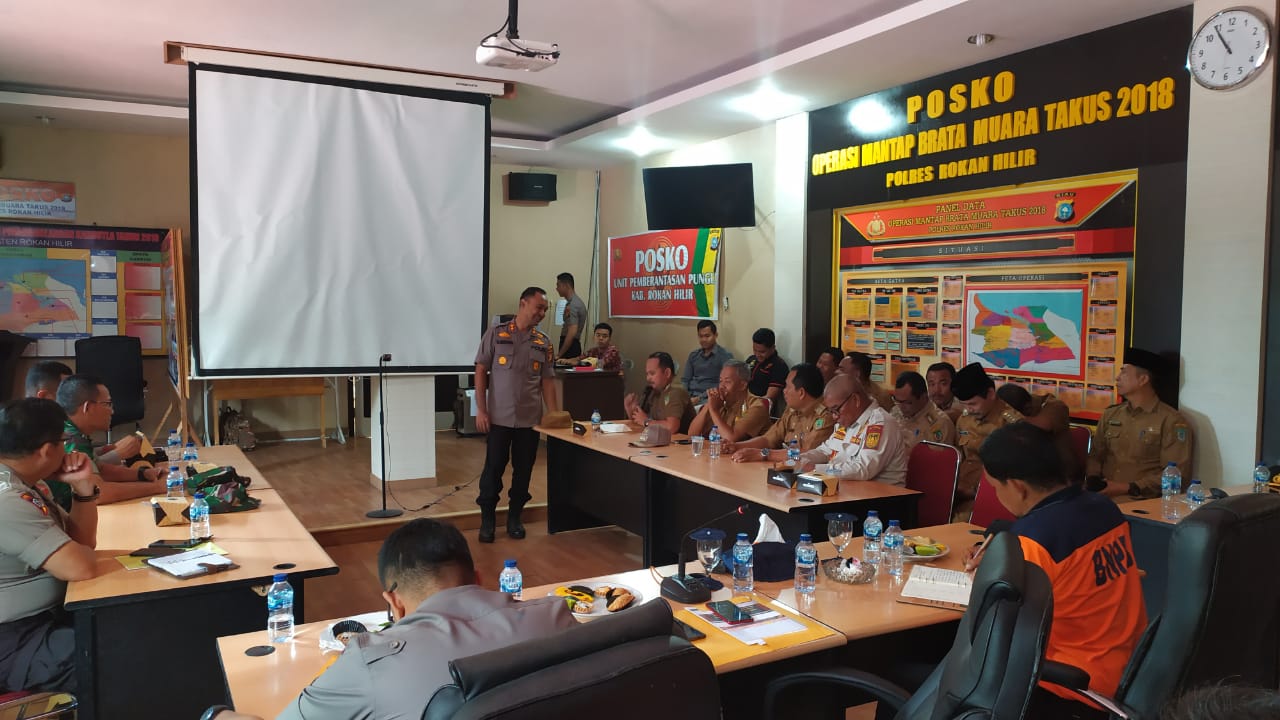 Kapolres Rokan Hilir AKBP. M. Mustofa, S.I.K., M.Si dalam penyampaiannya berharap,seluruh komponen dapat bersinergi dengan BPBD dalam mengatasi Karlahut di wilayah Kabupaten Rokan Hilir.