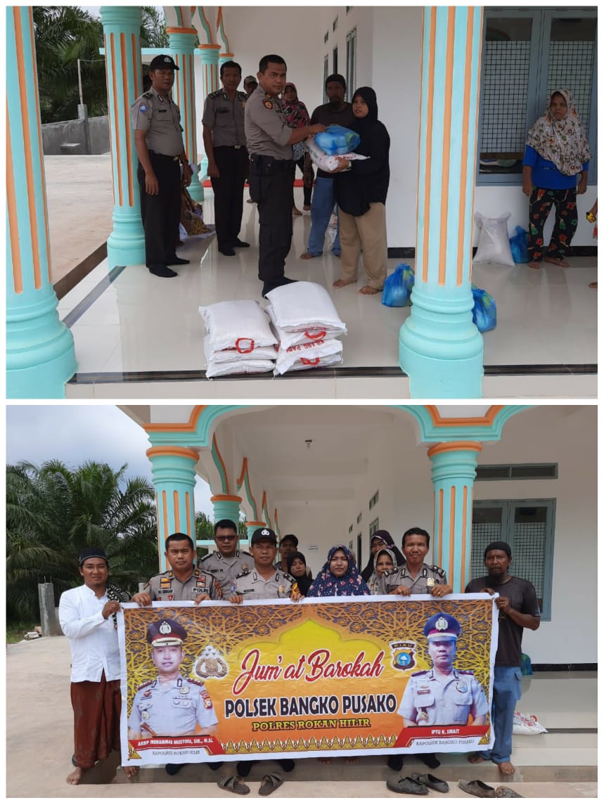 Kapolres Rohil AKBP Muhammad Mustofa,SIk,MH yang di konfirmasi melalui Kapolsek Bangko Pusako AKP Kornel Sirait,Jumat (07/02) mengatakan giat jumat barokah dalam rangka membantu masyarakat kurang mampu diwilayah hukum Polsek Bangko yang sudah menjadi agenda di Polsek Bangko Pusako dua minggu sekali.