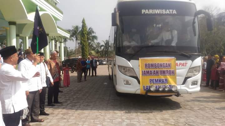 LABUHANBATU (MR) - Sebanyak 40 orang Jama'ah umroh asal labuhanbatu di lepas keberangkatanya oleh Bupati labuhanbatu H.Andi Suhaimi Dalimunthe ST.MT di halaman masjid raya ujung bandar rantauprapat kecamatan rantau selatan, Minggu pagi (9/2/2020).