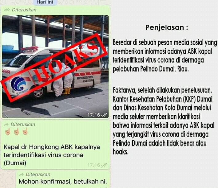 DUMAI (MR) - Beberapa waktu yang lalu, masyarakat Kota Dumai Sempat dihebohkan oleh beredarnya isu bahwa ada Crew Kapal yang terjangkit virus Corona di Pelabuhan Pelindo I Dumai.