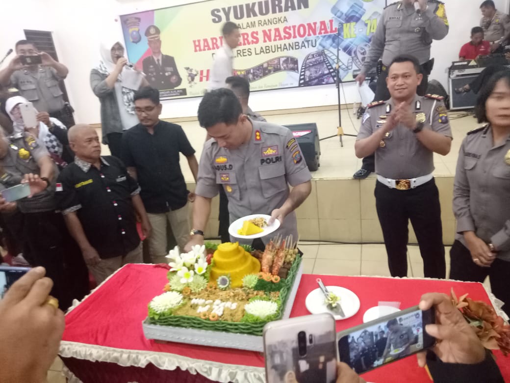 LABUHANBATU (MR) - Dalam rangka memperingati Hari Pers Nasional (HPN) ke 74, Polres Labuhanbatu menggelar acara syukuran dengan Para wartawan se Labuhanbatu Raya, Jumat (14/2/2020) di aula Yanfiter Polres Labuhanbatu.