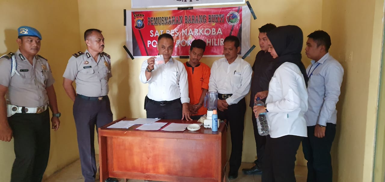 Pemusnahan barang bukti ini dipimpin KBO Sat Res Narkoba Polres Rokan Hilir IPTU Yuliardi SH didampingi Kasat Tahti IPTU Ruminto, Kasiwas IPTU Hendra Yardi,Kasi Propam diwakili Brigadir Wibowo dan disaksikan Kejaksaan Negeri Bagansiapiapi Rahmad Hidayat SH, Penasehat Hukum Prodeo diwakili M. Jefri Saragih SH dan diisaksikan oleh pelaku.