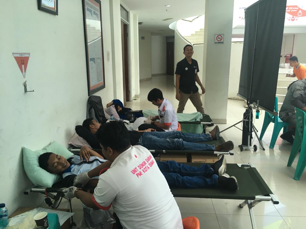 Pantauan kegiatan donor darah di kantor Pelindo I Dumai, hingga pukul 10.30 WIB terlihat masih berlangsung. Tampak masih banyak peserta yang antri menunggu giliran untuk mendonorkan darahnya. (MR/RED)