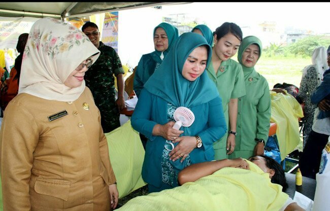 LABUHANBATU (MR) - Ketua Tim Penggerak PKK Kabupaten Labuhanbatu Hj. Rosmanidar Andi Suhaimi Dalimunthe bersama Ketua Persit KCK Kodim 0209/LB Noviana Santoso didampingi Kepala Dinas Pengendalian Penduduk dan Keluarga Berencana (P2KB) Labuhanbatu Hj. Lidiyawati Harahap, S.Psi. M.AP secara bersama-sama meninjau kegiatan Pelayanan KB Gratis yang digagas Dinas P2KB dengan Dinas Kesehatan Labuhanbatu dalam rangka Acara Penyuluhan Kesehatan Ibu, Bayi dan Anak serta Serasehan Kampung KB, Selasa (25/2/2020) di Lapangan eks Pasar Baru Jalan Diponegoro Rantauprapat.