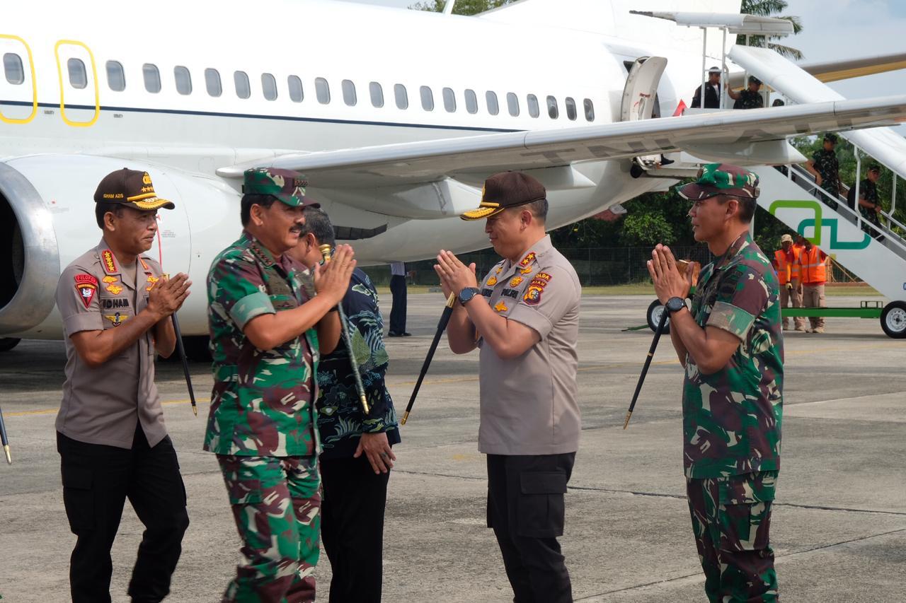 PEKANBARU (MR) - Panglima TNI Marsekal Hadi Tjahjanto dan Kapolri Jenderal Pol Idham Azis, tiba hari ini di Pekanbaru Riau dalam rangka Launching aplikasi Dashboard Lancang Kuning Nasional yang akan laksanakan hari Senin besok (09/03/2020).