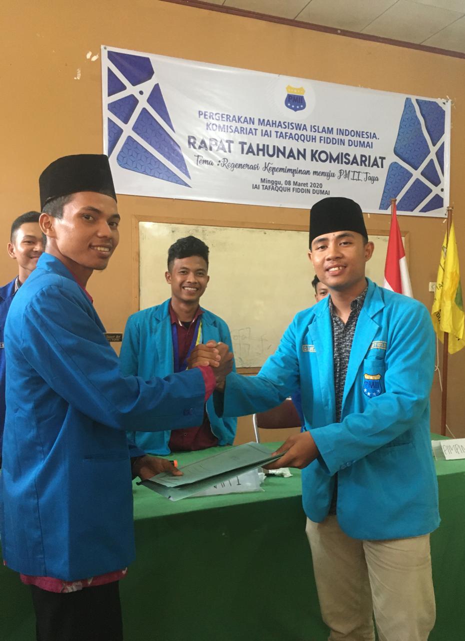 DUMAI (MR) - Pengurus komisariat IAI TF Pergerakan Mahasiswa Islam Indonesia (PMII) Kota Dumai resmi berganti ketua pada Rapat tahunan komisariat yang III yg di adakan di aula Kampus Institut agama Islam Tafaqquh Fiddin kota Dumai, 08 Maret 2020