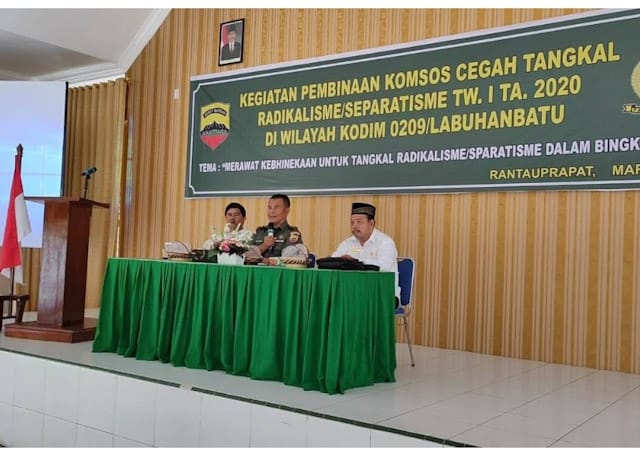 LABUHANBATU (MR) - Pemerintah Labuhanbatu melalui Dinas Koperasi dan UKM Jekson Simangunsong SH menghadiri Kegiatan Komsos cegah Tangkal Radikalisme/Separatisme yang dilaksanakan di Aula Kodim Labuhanbatu, tepatnya di JL Abdul Azis Kelurahan Padang Matinggi pada Rabu (11/03/2020).
