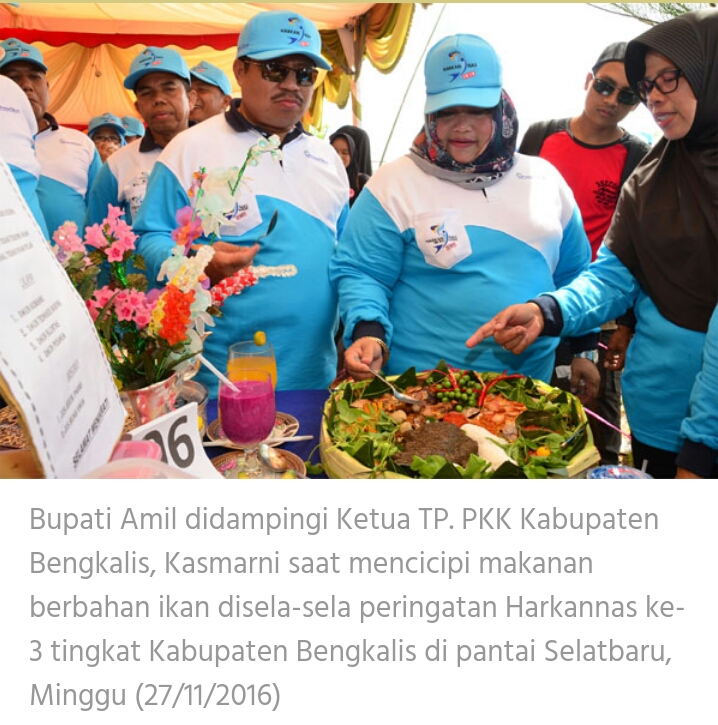 Ungkapan ini disampaikannya, saat memberikan sambutan sekaligus membuka secara resmi peringatan Hari Ikan Nasional (Harkannas) ke-3 tingkat Kabupaten Bengkalis, di Pantai Pesona Selatbaru, tepatnya di samping pelabuhan Internasional Bandar Sri Setia Raja, Minggu (27/11/2016) pagi.