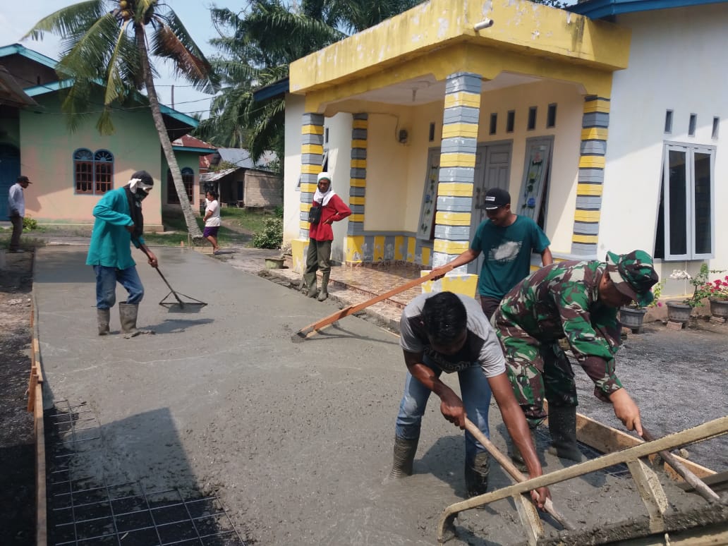 Demikian pesan Babinsa Kelurahan Pelintung, Serma Hendrianto Saat ikut berjibaku dalam pelaksanaan pekerjaan semenisasi jalan di Sasaran 2 bersama Satgas TMMD Ke-107 Kodim 0320/Dumai di Kelurahan Pelintung Kecamatan Medang Kampai Kota Dumai (18/3).