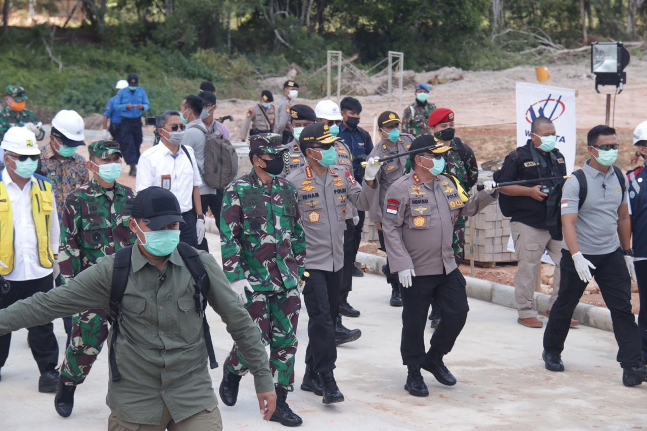 JAKARTA (MR) - Panglima TNI Marsekal Hadi Tjahjanto bersama Kapolri Jenderal Idham Azis melakukan kunjungan kerja untuk meninjau progres pembangunan RS Khusus penyakit menular yang diperuntukan bagi pasien Covid-19 di Pulau Galang, Kepulauan Riau, Rabu (25/3).