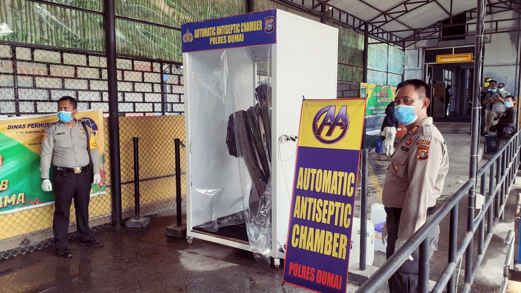“Alat tersebut berfungsi sebagai alat semprot otomatis desinfektan. Setiap penumpang yang masuk kedalam Automatic Antiseptic Chamber akan disemprot untuk membunuh virus Corona atau COVID-19, " Kata Kapolres Dumai AKBP Andri Ananta Yudistira.