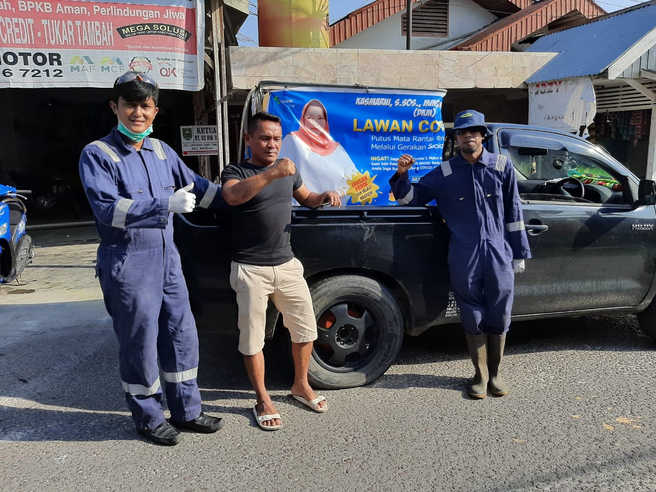 Ditambahkan Robby, Ini hari ketiga kami lakukan penyemprotan. Sebelumnya kami sudah menyemprot puluhan RT di 3 RW di kelurahan Pematang Pudu, lalu kawasan pemukiman di Duri Timur dan Gajah Sakti. Hari ini kawasan sepanjang jalan Sudirman dan Gang Ceria.