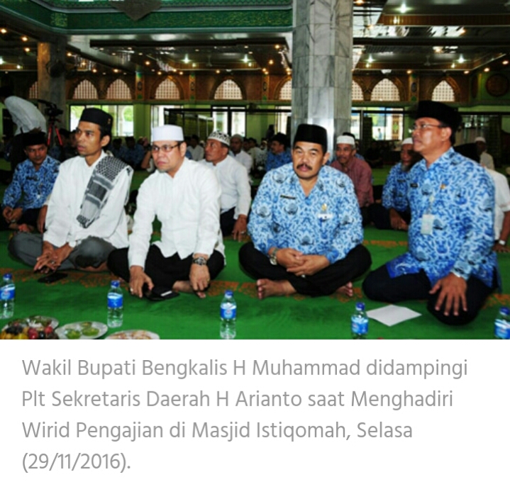 “Masyarakat menginginkan pelayanan terbaik dan prima. Untuk itu, ASN harus bekerja cepat dan akurat, serta menjadi suri tauladan, baik itu di lingkungan kerja maupun lingkungan masyarakat,” demikian sambutan Amril Mukminin yang dibacakan Plt Sekretaris Daerah Arianto pada kegiatan wirid pengajian di Masjid Istiqomah, Selasa (29/11/2016).