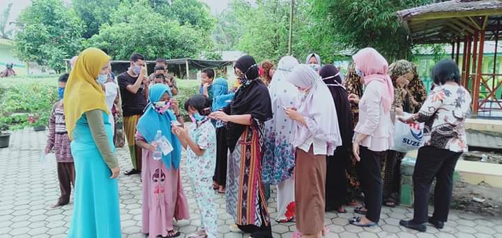 LABUHANBATU (MR) - Dharma Wanita Persatuan (DWP) Dinas Komunikasi dan Informatika, Kabupaten Labuhanbatu mengadakan Bakti sosial berbagi Masker dan semprotkan Desinfektan ke Panti Asuhan Al Arif Labuhanbatu, Jl. Padang Matinggi pada Jum’at (03/04/2020).