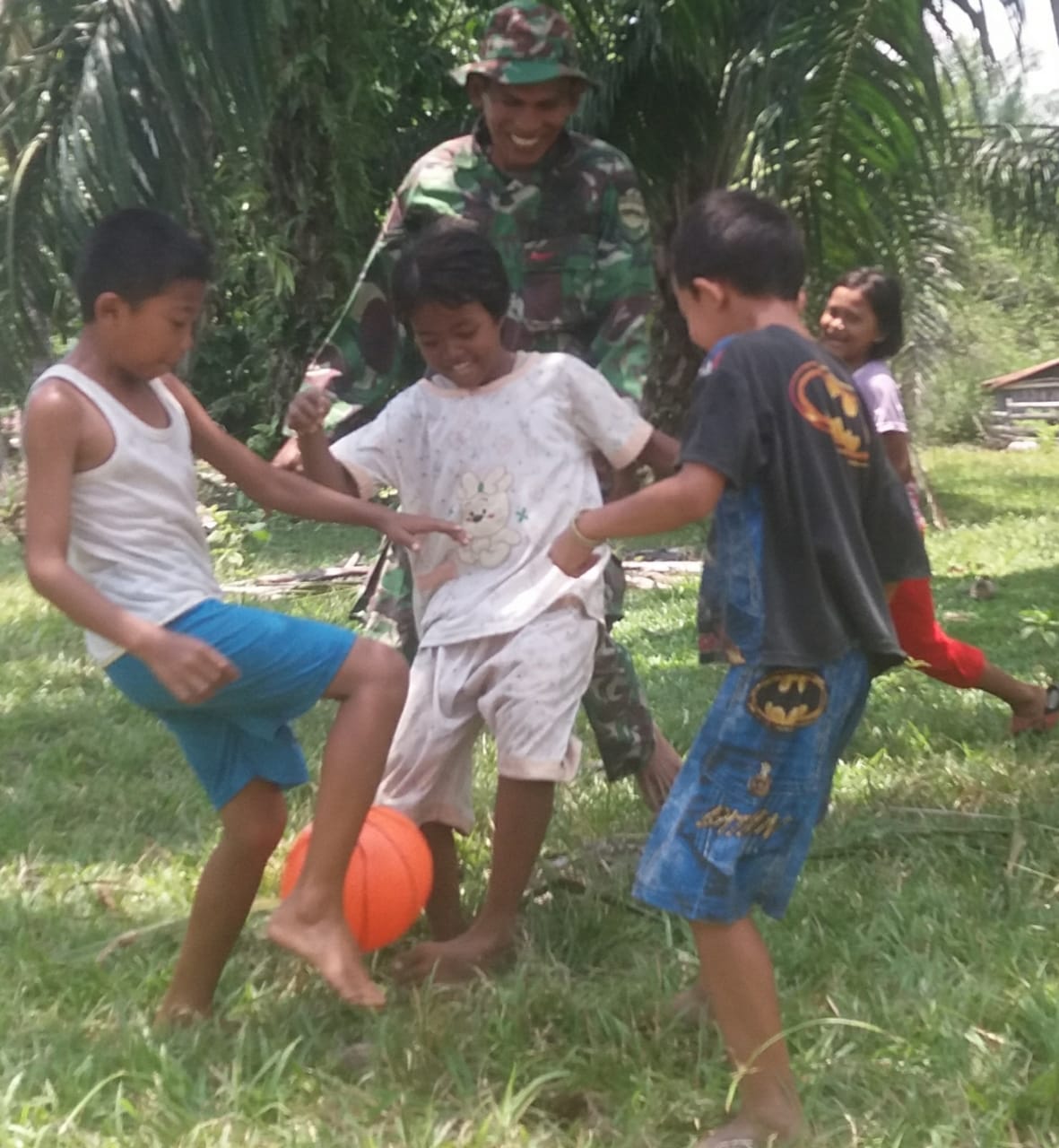 Di waktu senggang, saat jam istirahat, para anggota Satgas TMMD terlihat dikerumuni anak-anak, Momen tersebut tidak disia-siakan anggota TNI, Anak-anak diajak untuk bercanda,bl bermain dan sambil diberi Motivasi agar anak-anak dalam menuntut ilmu harus dengan sungguh-sungguh.
