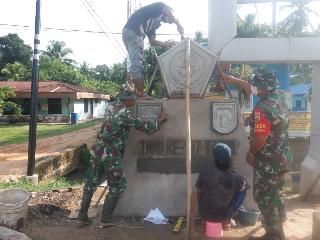 DUMAI (MR) - Pengerjaan pembangunan tugu untuk memperingati Pelaksanaan kegiatan TNI Manunggal Membangun Desa (TMMD) ke 107 di Kecamatan Medang Kampai, kelurahan Pelintung sebentar lagi akan selesai.