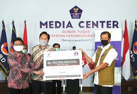Sumbangan diterima langsung oleh Kepala Gugus Tugas Percepatan Penanganan Covid-19 Doni Monardo, di kantor BNPB, Kamis (9/4/2020).