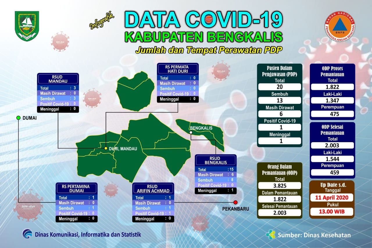 BENGKALIS (MR) - Hari ini, Sabtu, 11 April 2020, satu orang lagi Pasien Dalam Pengawasan (PDP) Covid-19 di Kabupaten Bengkalis yang dinyatakan sembuh usai menjalani perawatan.