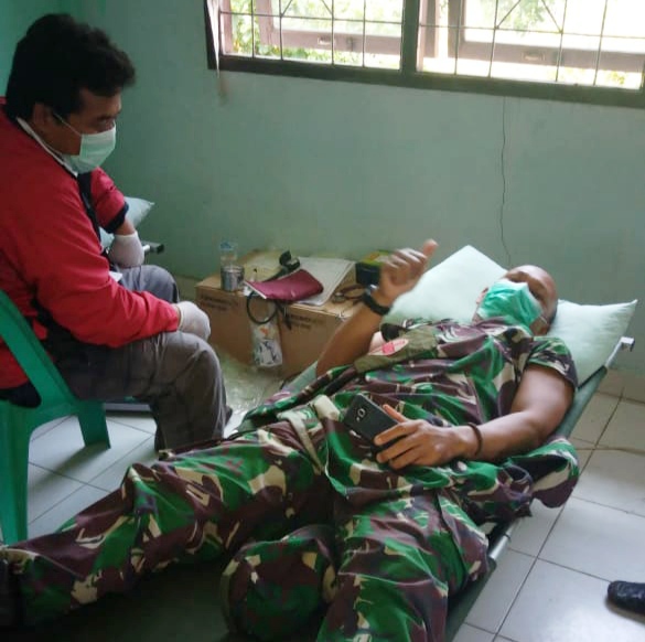 DUMAI (MR) - Bertempat di Aula Kantor Lurah Bukit Batrem Kecamatan Dumai Timur Kota Dumai, Senin (13/04/2020) pukul 09.00 WIB, Koramil 01 Dim 0320 Dumai melaksanakan kegiatan donor darah.