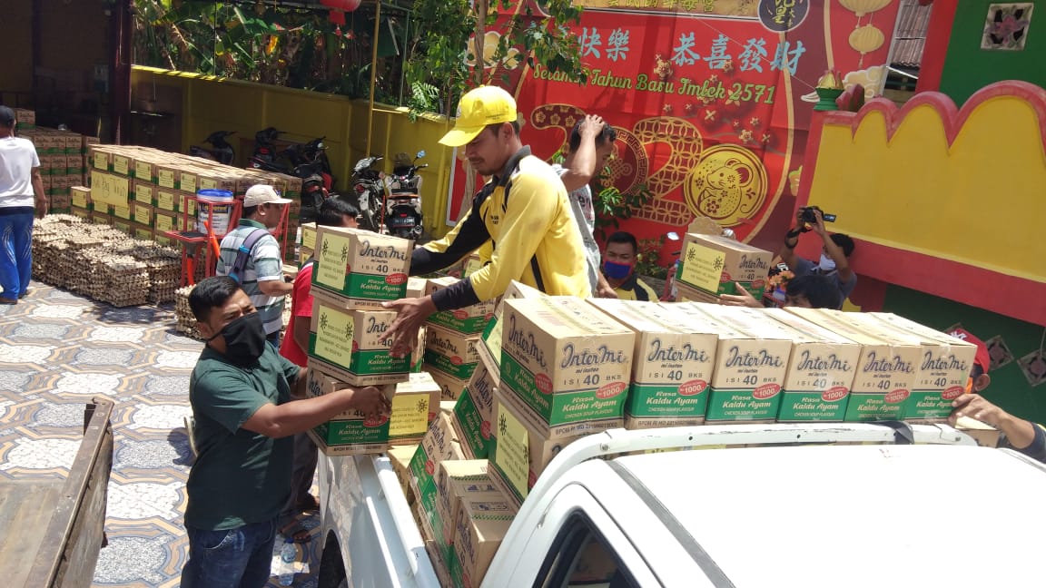 Terkait pembagian sembako yang ditaja para donatur yang dipusatkan di Kelenteng Pagoda Sayur, sambung Camat, paket tersebut secara simbolis telah diserahkan ke beberapa Kelurahan dan Kepenghuluan.