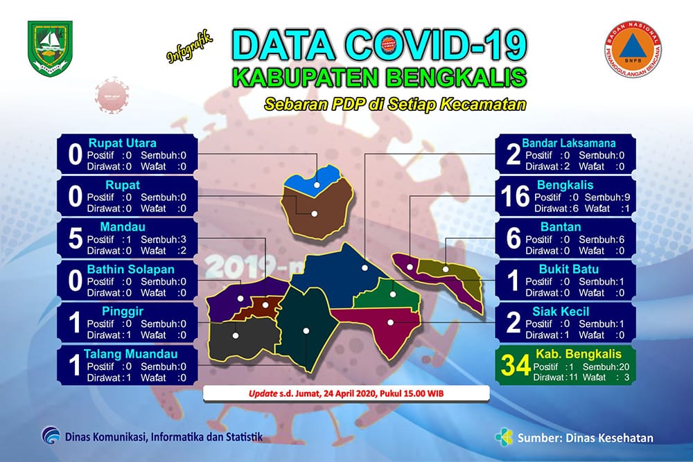 Dengan bertambahnya 2 PDP dari Pinggir dan Talang Muandau ini, maka total PDP tercatat di Kabupaten Bengkalis sebanyak 34 orang, 20 diantaranya sudah dinyatakan sembuh usai menjalani perawatan dan 3 orang meninggal dunia.