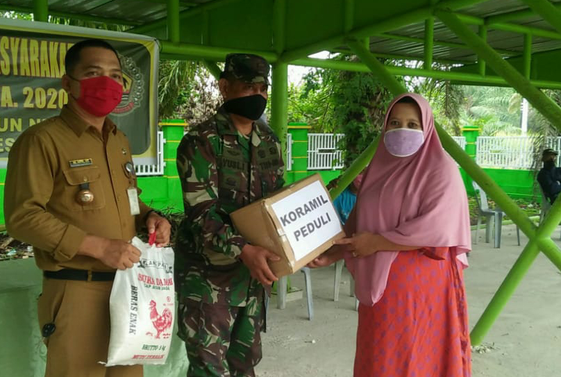 Selasa (28/4), Koramil 02/Dumai Melaksanakan kegiatan pembagian sembako dan kebutuhan yang diperlukan oleh masyarakat pelintung.