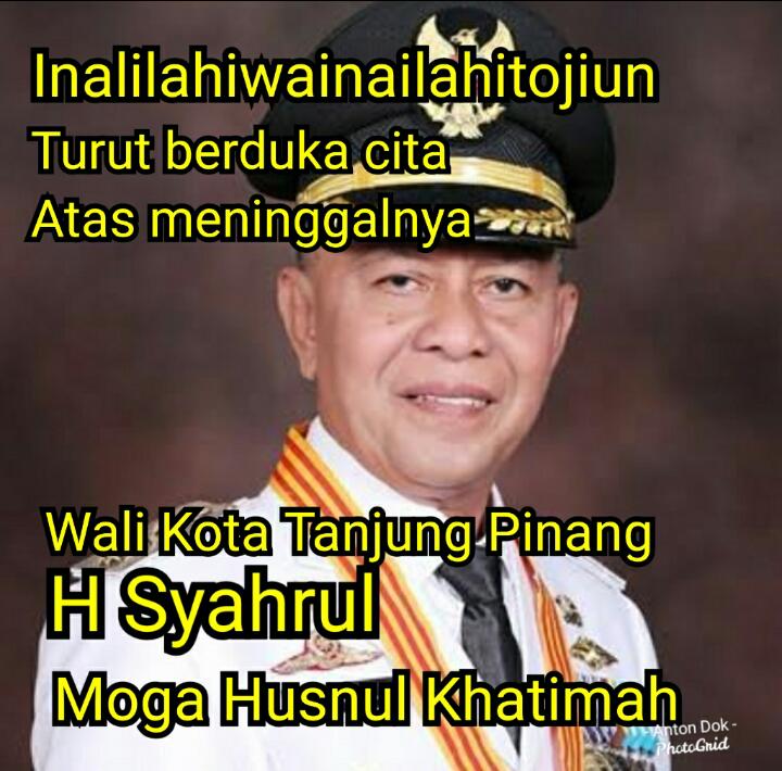 “Telah berpulang ke Rahmatullah Walikota Tanjungpinang, ayahanda Syahrul pukul 14:45, Semoga Arwah beliau mendapat tempat mulia disisi Allah,SWT Amin Ya Rabbal Al-Amin,” ungkap Tjetjep.